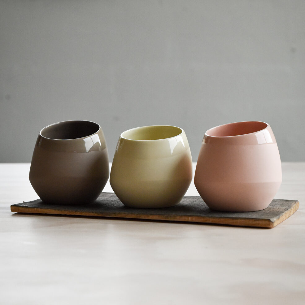 I tillegg til rosa har vi laget en syrlig gul og en nøytral kaffebrun for denne koppen.