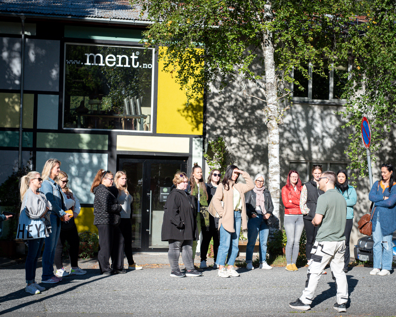 i den historiske skifabrikken på Fåberg. Her kan du oppleve norsk design og håndlagde porselensprodukter som har blitt omfavnet både nasjonalt og internasjonalt. I en unik atmosfære kan du handle i butikken, følge produksjonsprosessen, bli inspirert i vårt inspirerende galleri, eller bare nyte den frodige hagen. Ta en pause og se på den grønne Gudbrandsdalslågen – kilden til mange av de vakre fargene som preger ment®’s produkter.