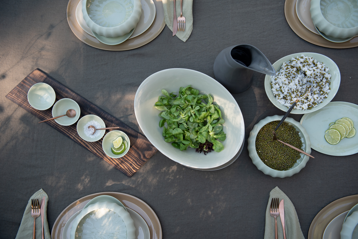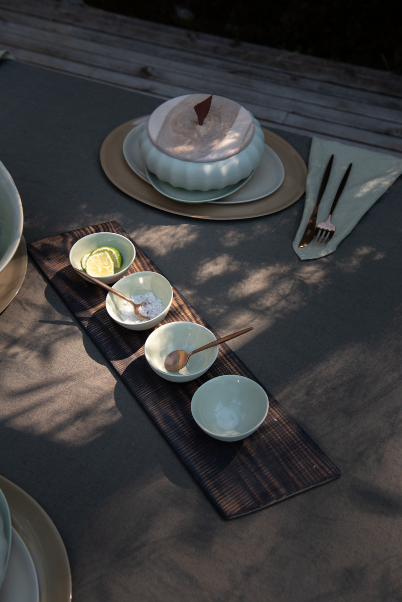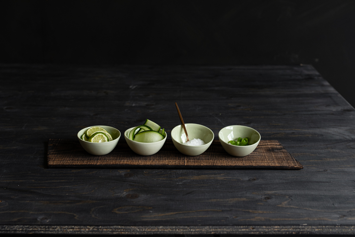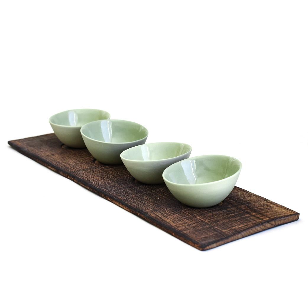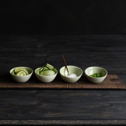 De små dippbollene støpes for hånd i gjennomfarget porselen og glaseres innvendig med transparent glasur. Utsiden er ubehandlet og dette gir en matt, delikat og taktil overflate.