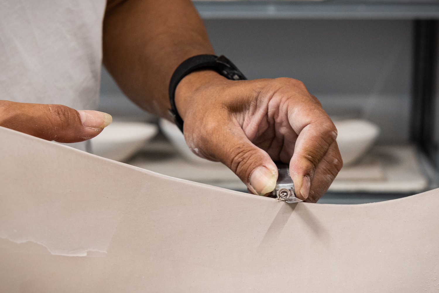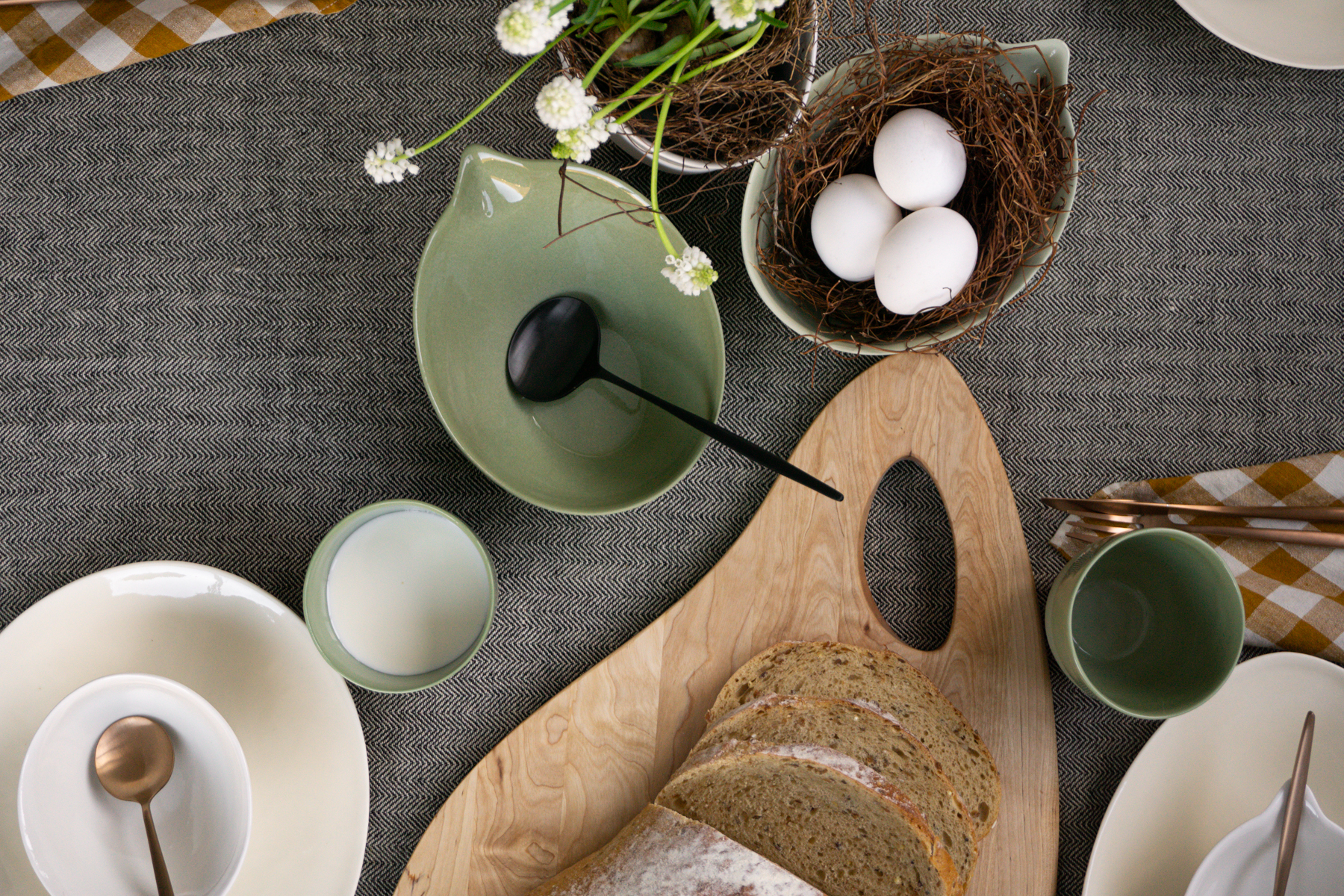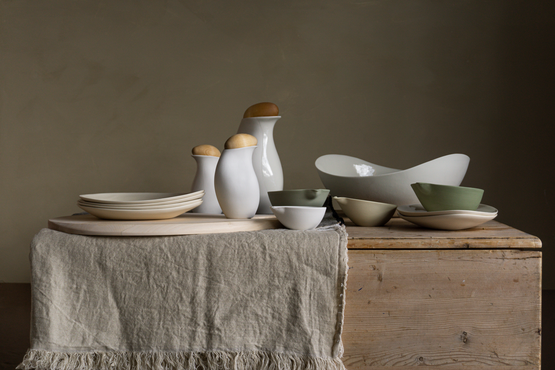 Vannkannen har en særegen, organisk form som minner om en klassisk amfora-krukke sett forfra. Korken er hånddreid i bjørk og tilfører kannen det lille ekstra.