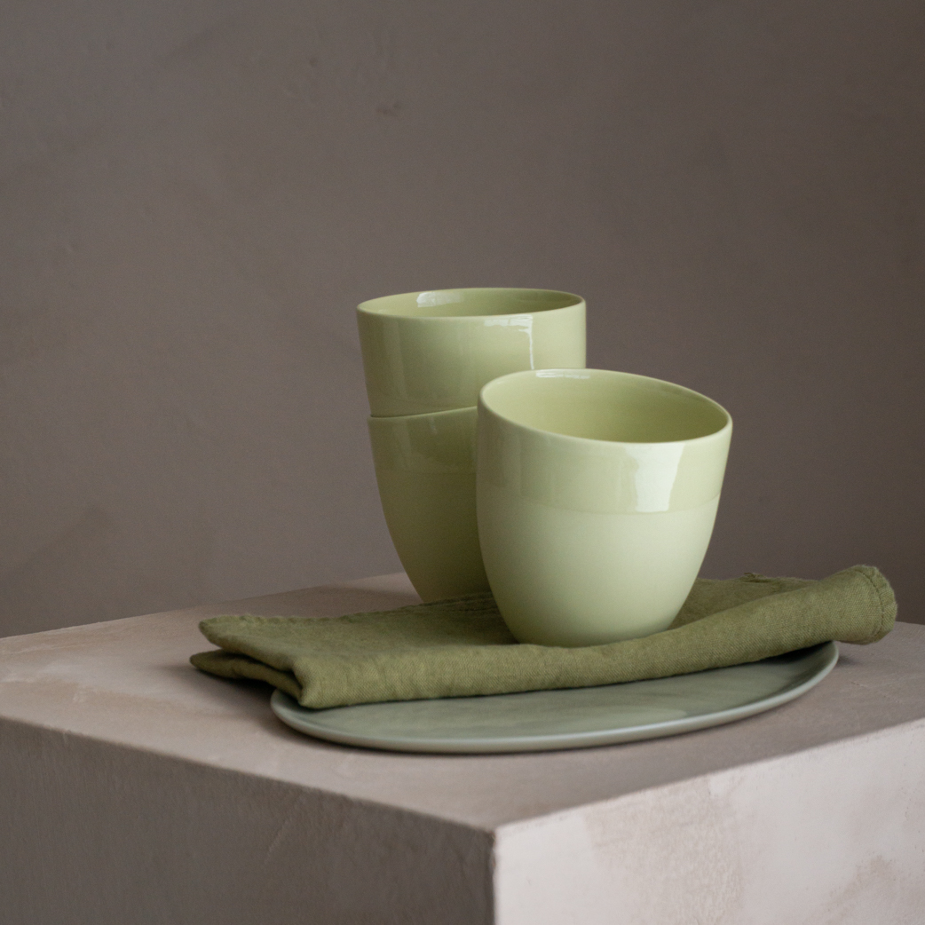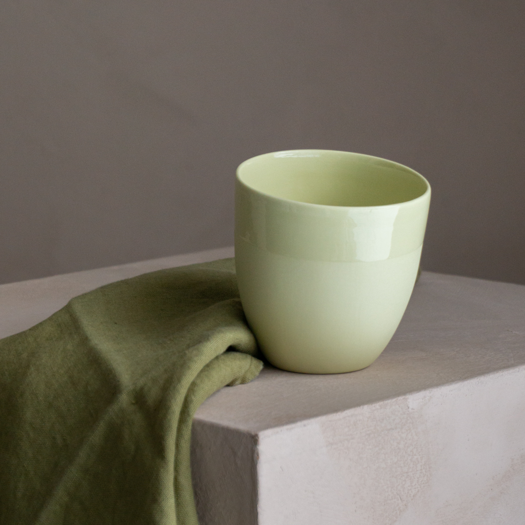 En kaffekopp i fargen Spire og en nydelig linserviett til. Passer fint som gave til en du er glad i.