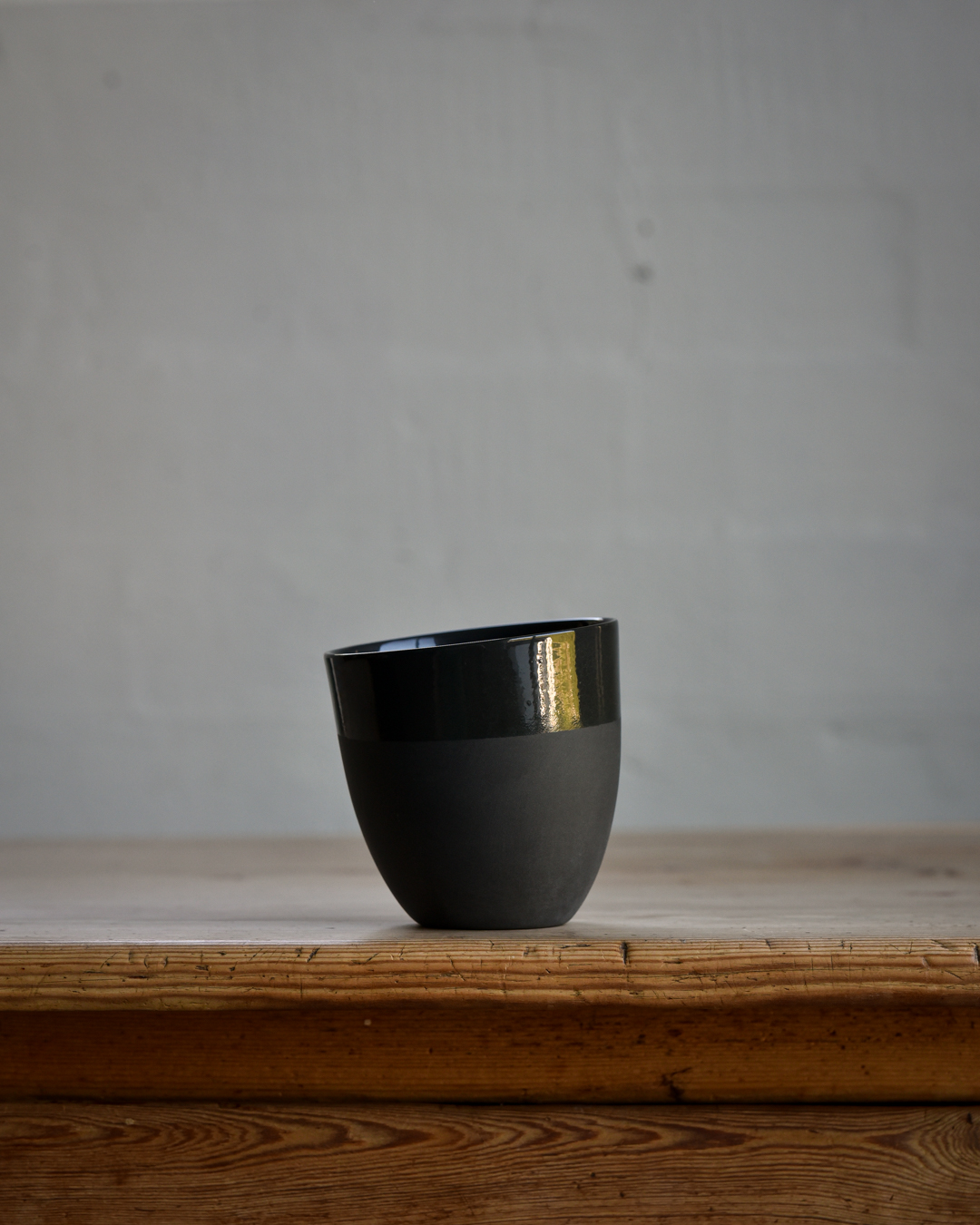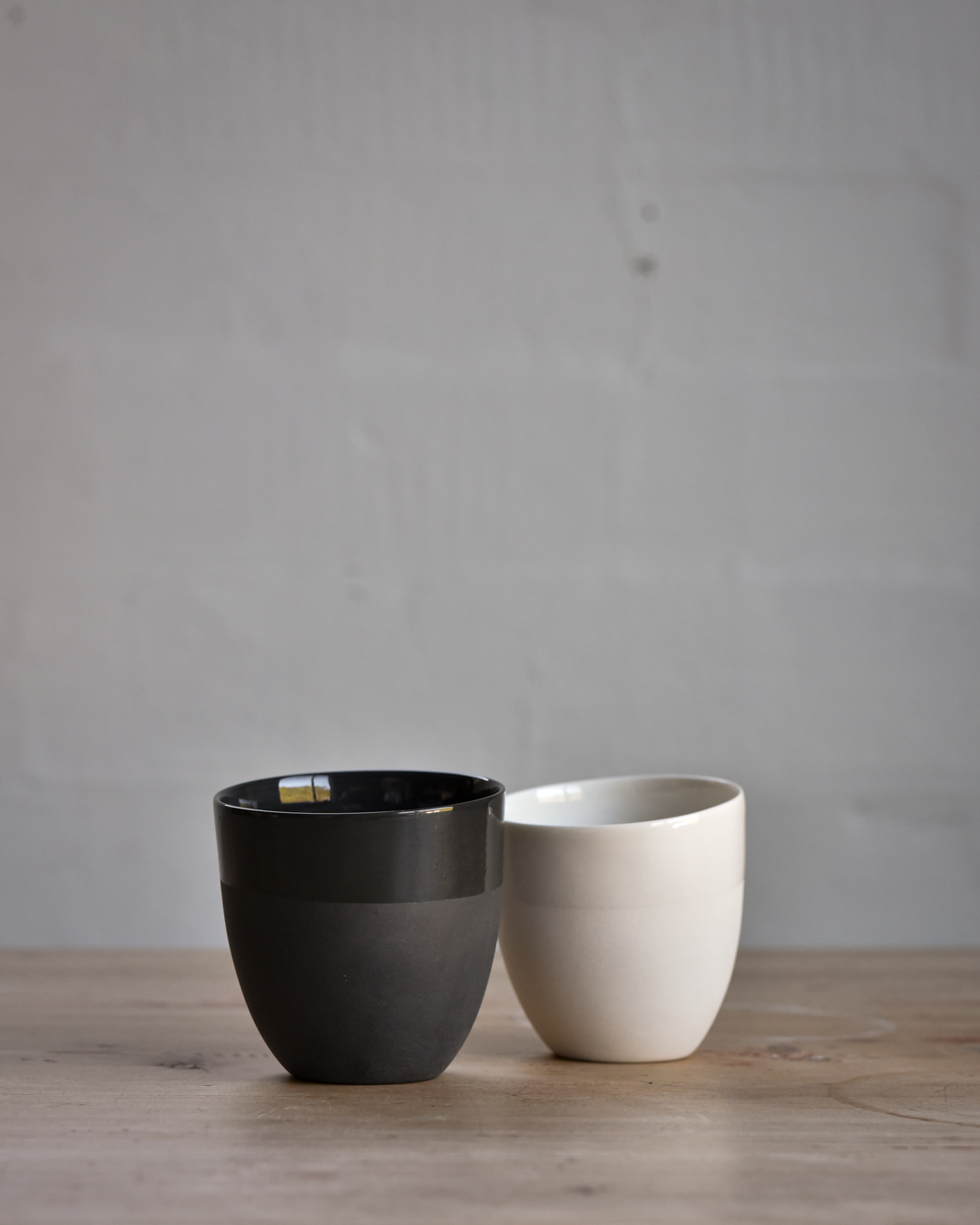 Håndlaget kopp i gjennomfarget porselen som ligger godt i hånden og har en behagelig, fløyelsmyk overflate. Glasert med transparent glasur inni og rundt kanten du drikker av.