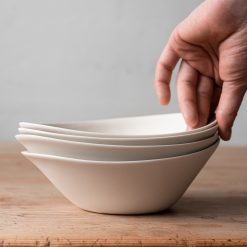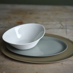 En vakker suppeskål med et organisk design. Skålen er laget i gjennomfarget porselen og er glasert med transparent glasur inni. Perfekt i kombinasjon med Krum tallerkener og kan brukes til alt fra dessert, supper, salat eller som en skål til snacks.