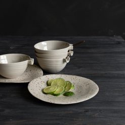 Spesialdesign for Brimi Eventyr. Håndlaget i gjennomfarget porselen. Skåla er laget for supper, desserter og gode smaker. Tuten gjør det enkelt å helle eller drikke av