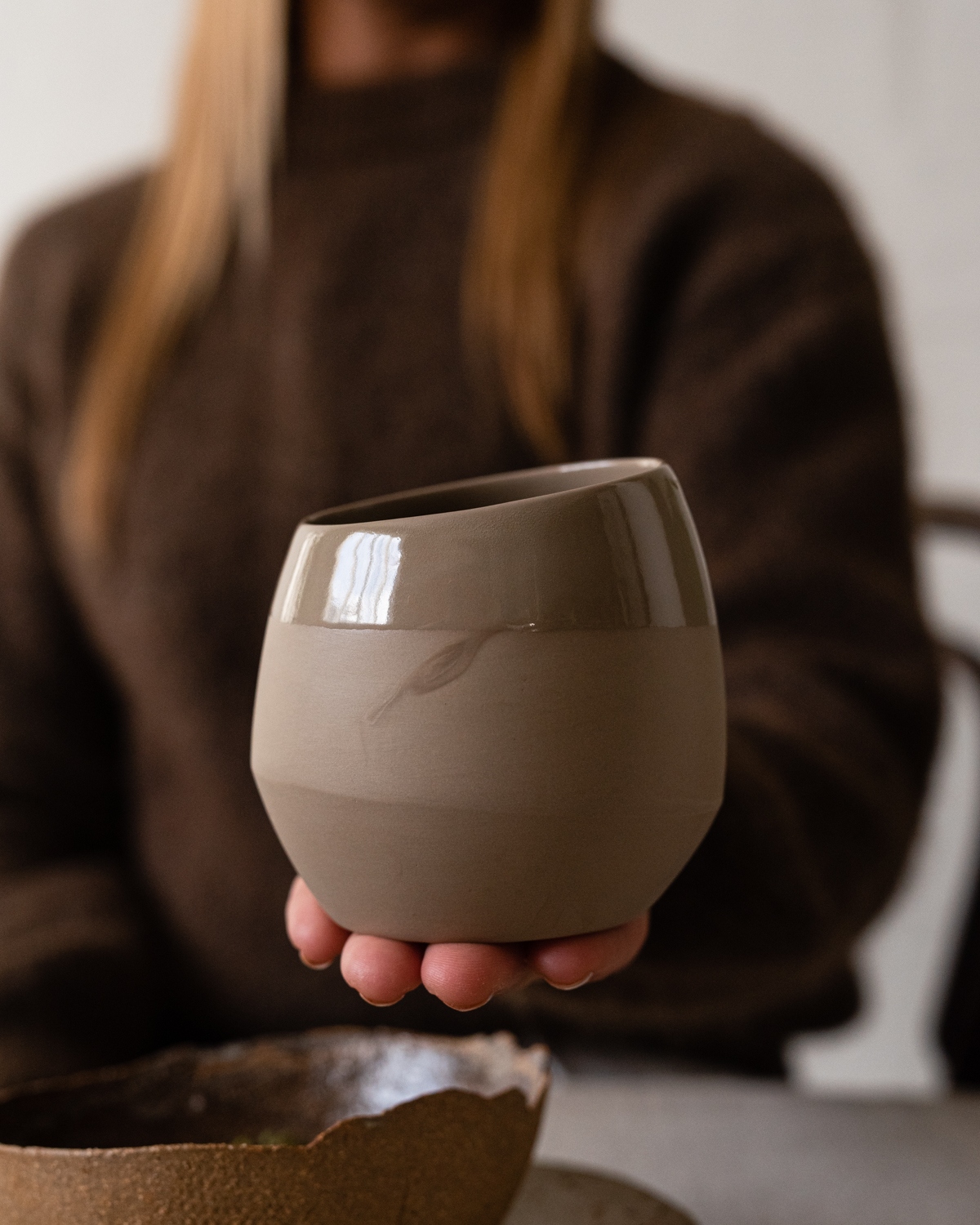 NERD kaffekopp er spesialdesignet for og med kaffenerden Simen Andersen, som ønsket en helt spesiell kopp å servere dommerne da han deltok i VM i kaffebrygging. Koppens form og farge er ment å fremheve smaksopplevelsen. Vi lager den for hånd i vår produksjon på Lillehammer, og koppen tåler oppvaskmaskin.