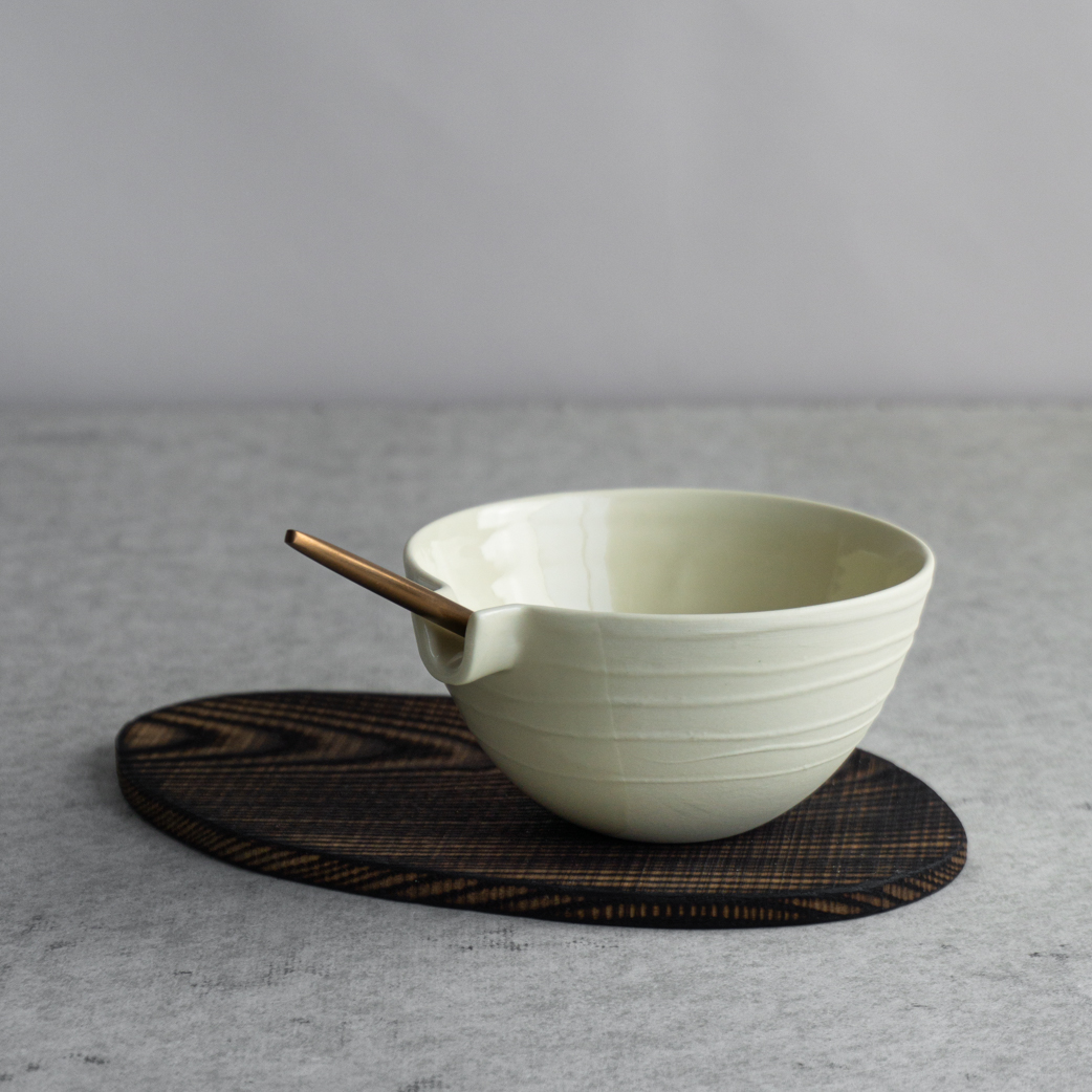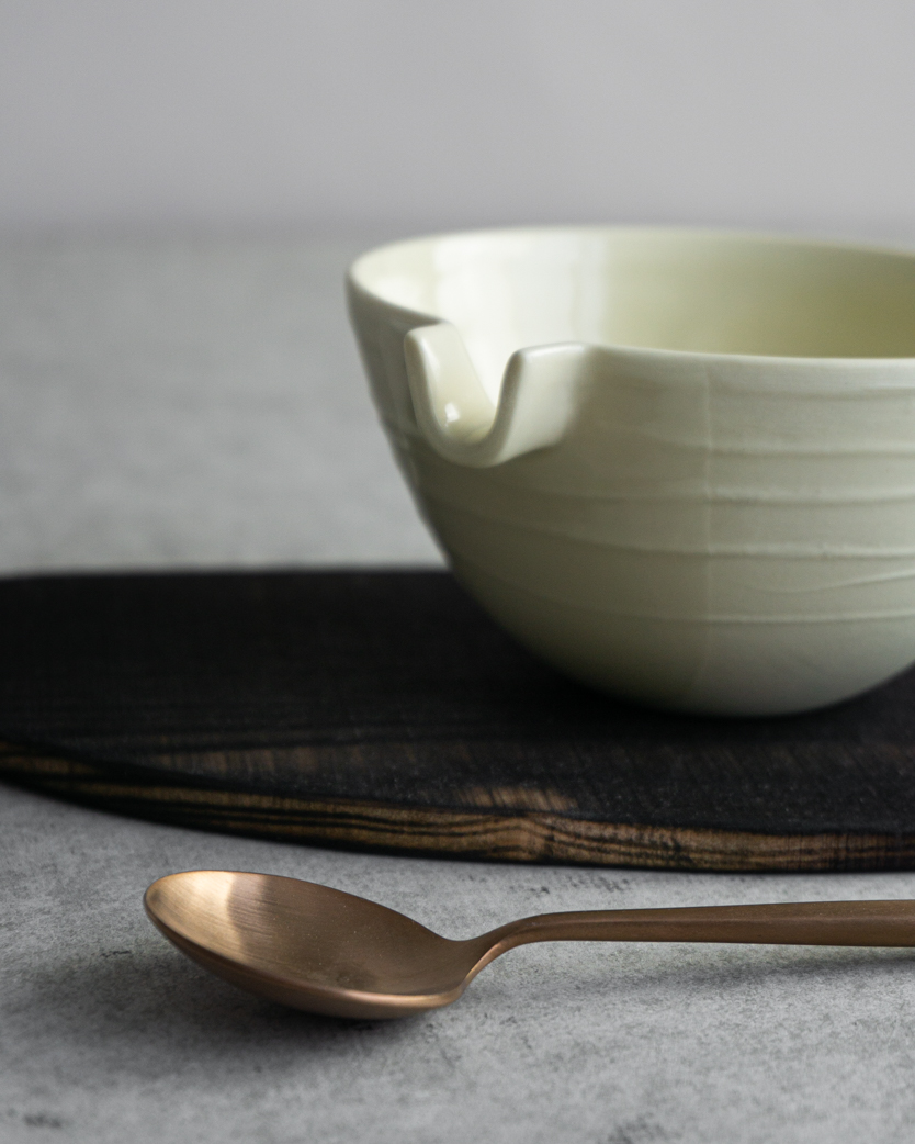 En gul Småkåskål, en Spikjifjøl og en dessertskje i Moon Kobber utgjør et nydelig gavesett.