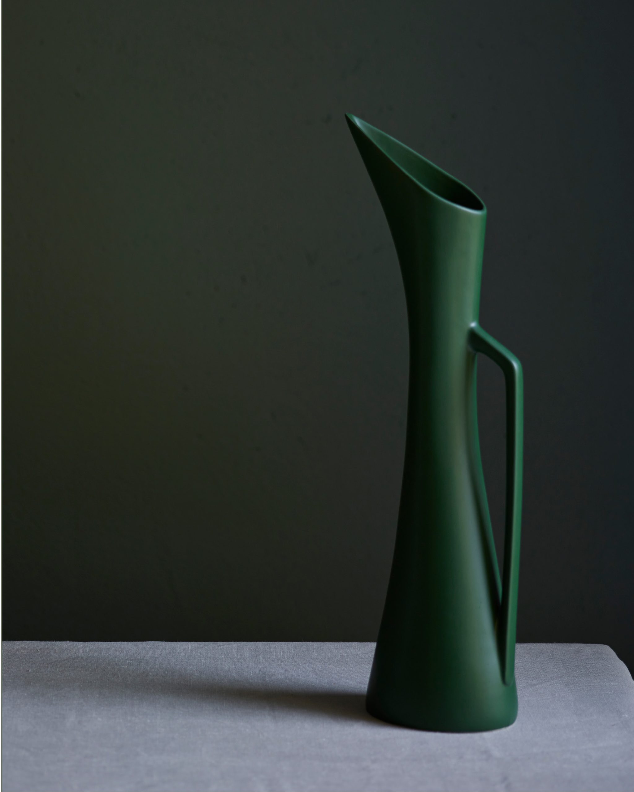 En skulpturell kanne som utstråler stolthet og eleganse. Plasser den midt på bordet for å skape umiddelbar oppmerksomhet. Perfekt for en enkel gren eller en overdådig blomst. Den er laget i keramikk og finnes i mange farger.