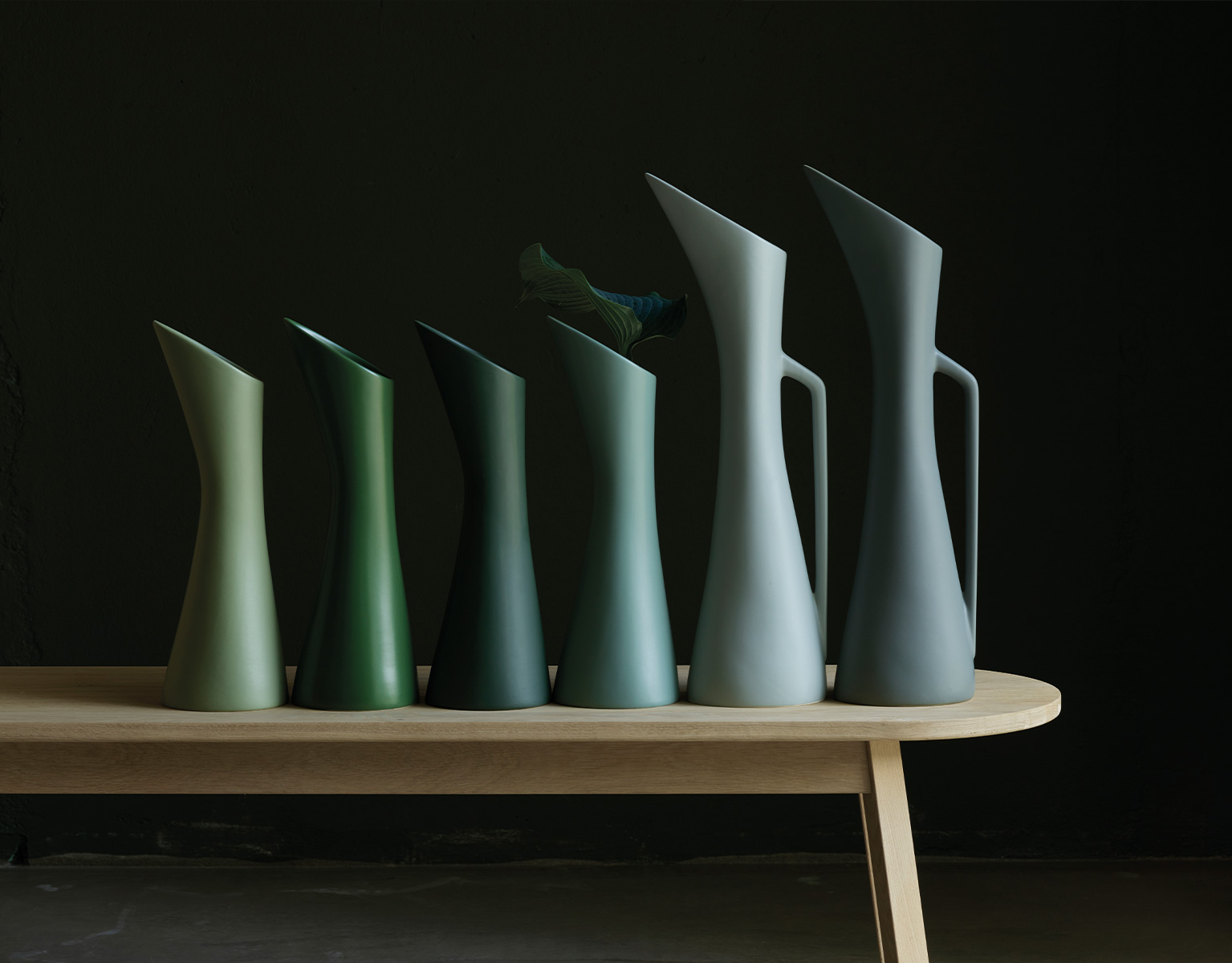 En skulpturell kanne som utstråler stolthet og eleganse. Plasser den midt på bordet for å skape umiddelbar oppmerksomhet. Perfekt for en enkel gren eller en overdådig blomst. Den er laget i keramikk og finnes i mange farger.