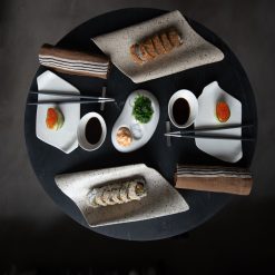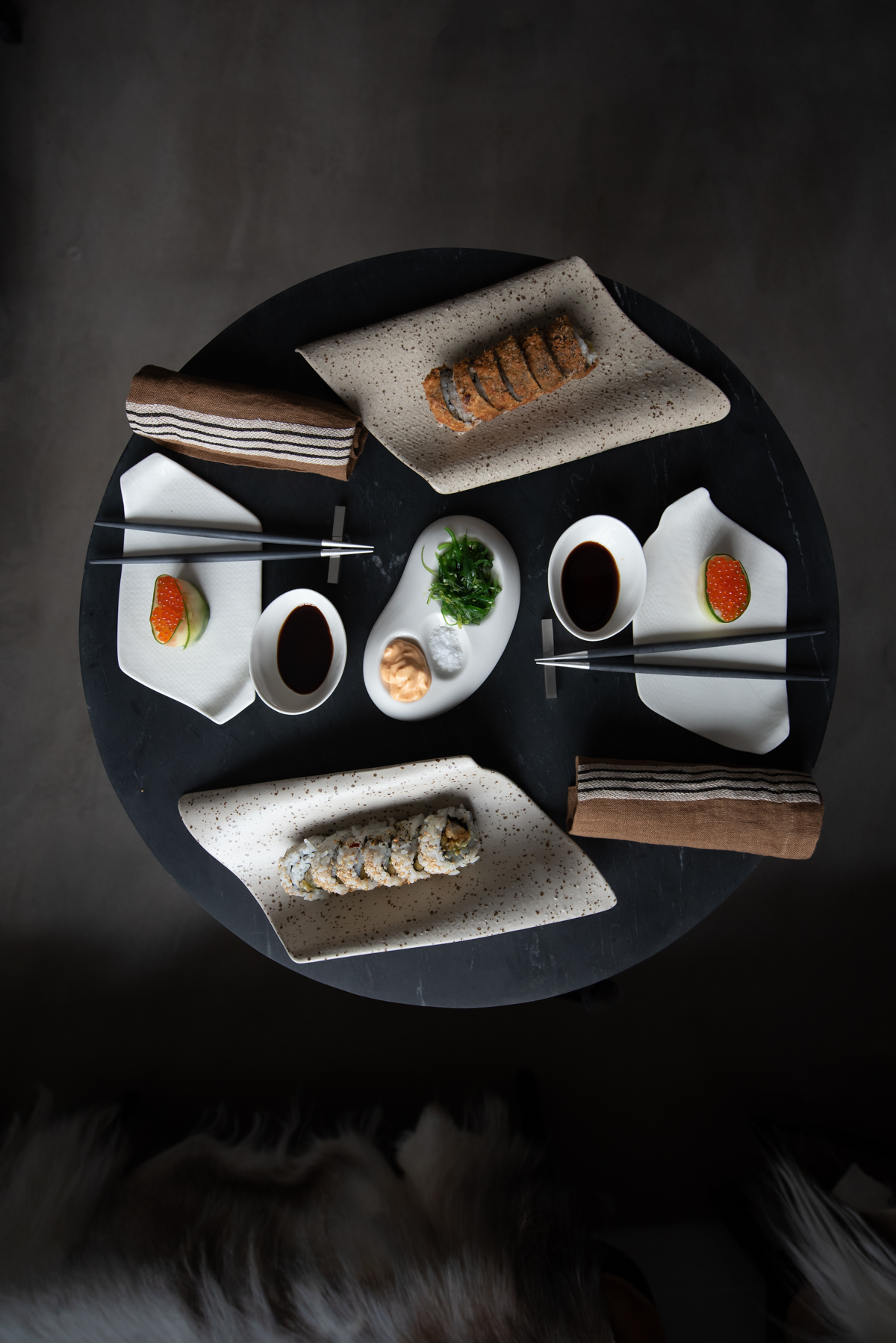 ment® + Omakase Sushi tallerken, spesialdesignet for restauranten Omakase, Hamar. Tallerkenen er håndlaget i hvit proselensleire. Produktene lages for hånd, ingen produkter er helt like.