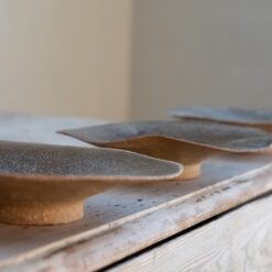 Sandtallerkenen skapes i leire, glaseres på oversiden med blank, transparent glasur og brennes like høyt som vårt porselen. Den kan derfor brukes til mat og vaskes i oppvaskmaskin.