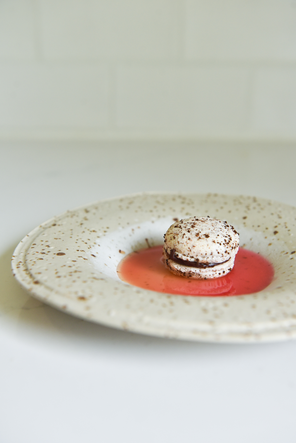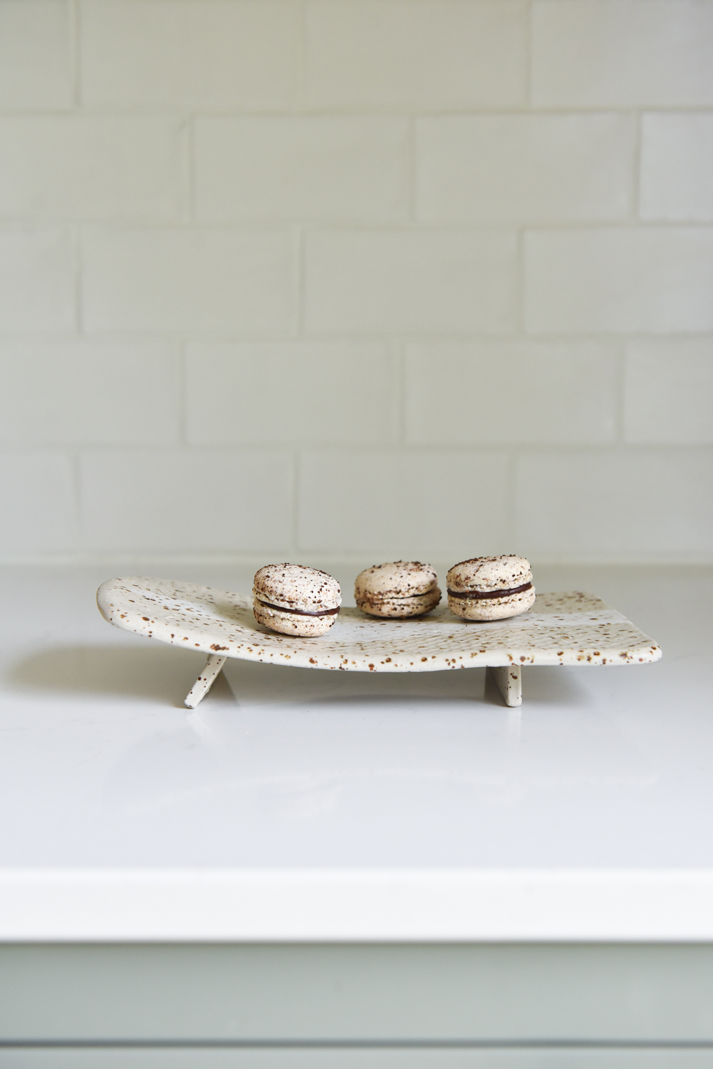 ment® + Slakteriet SKI petit four fat er laget for å fremheve små smaker som petit four. Fargen lys dople fremhever mørke ingredienser som sjokolade og brunost. Men er også morsom til makroner som her.