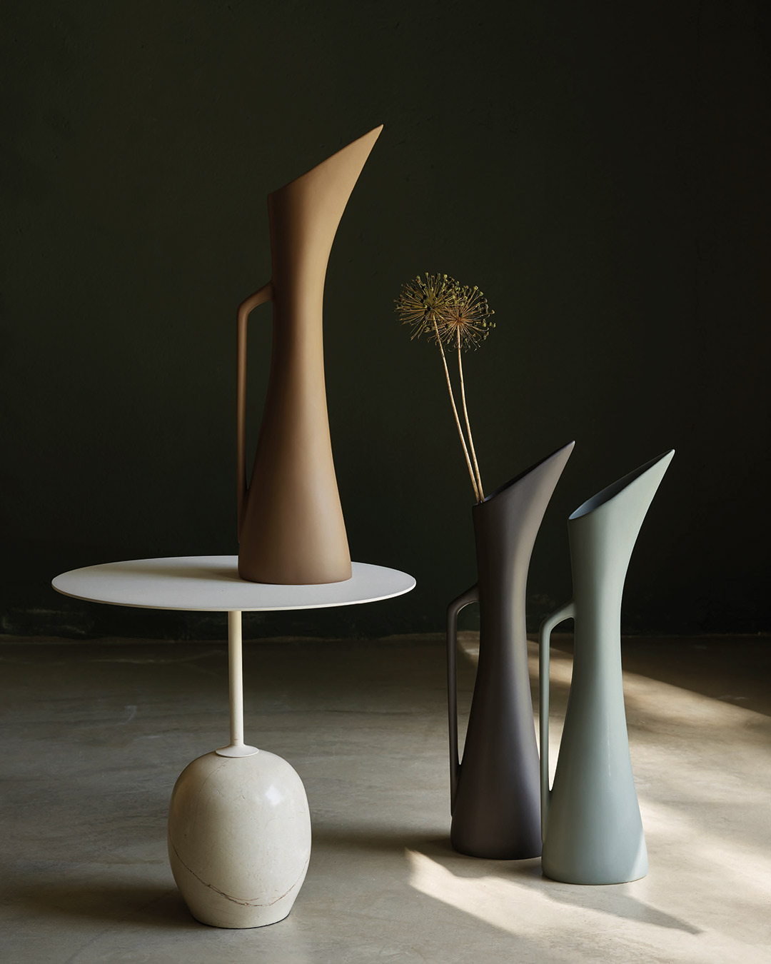 Skulpturell og elegant kanne i keramikk. Kan brukes som vase og passer for en enkel gren eller overdådig blomst. Kan også brukes som vannkaraffel. Plasser den gjerne sammen med Stolt Kanne i samme kolleksjon, de er designet for å høre sammen. Vasen er laget i keramikk og kommer i mange farger.