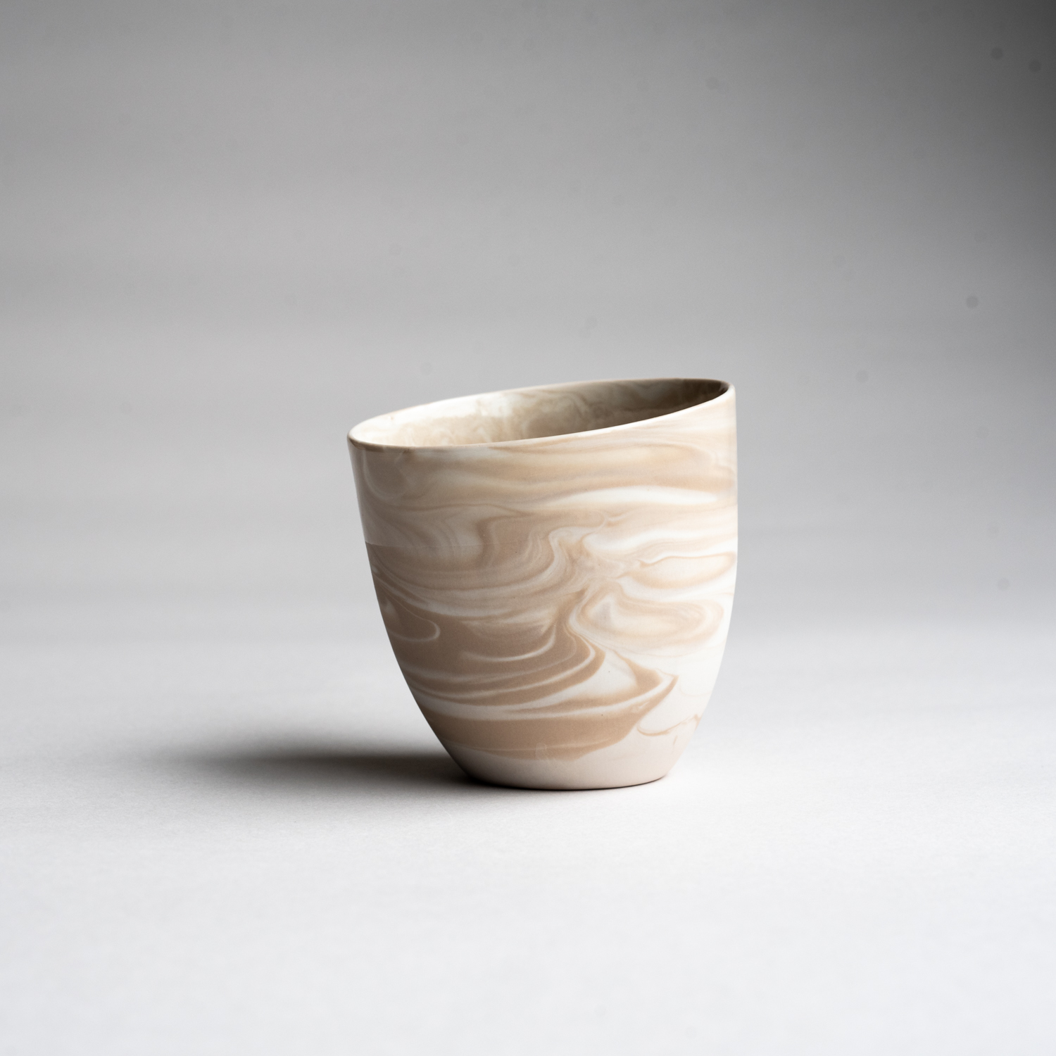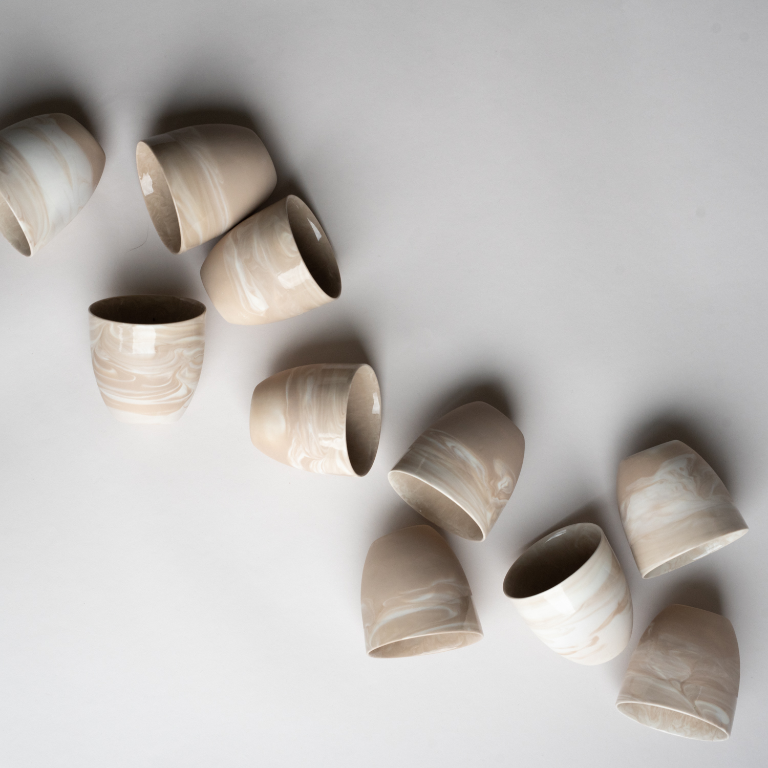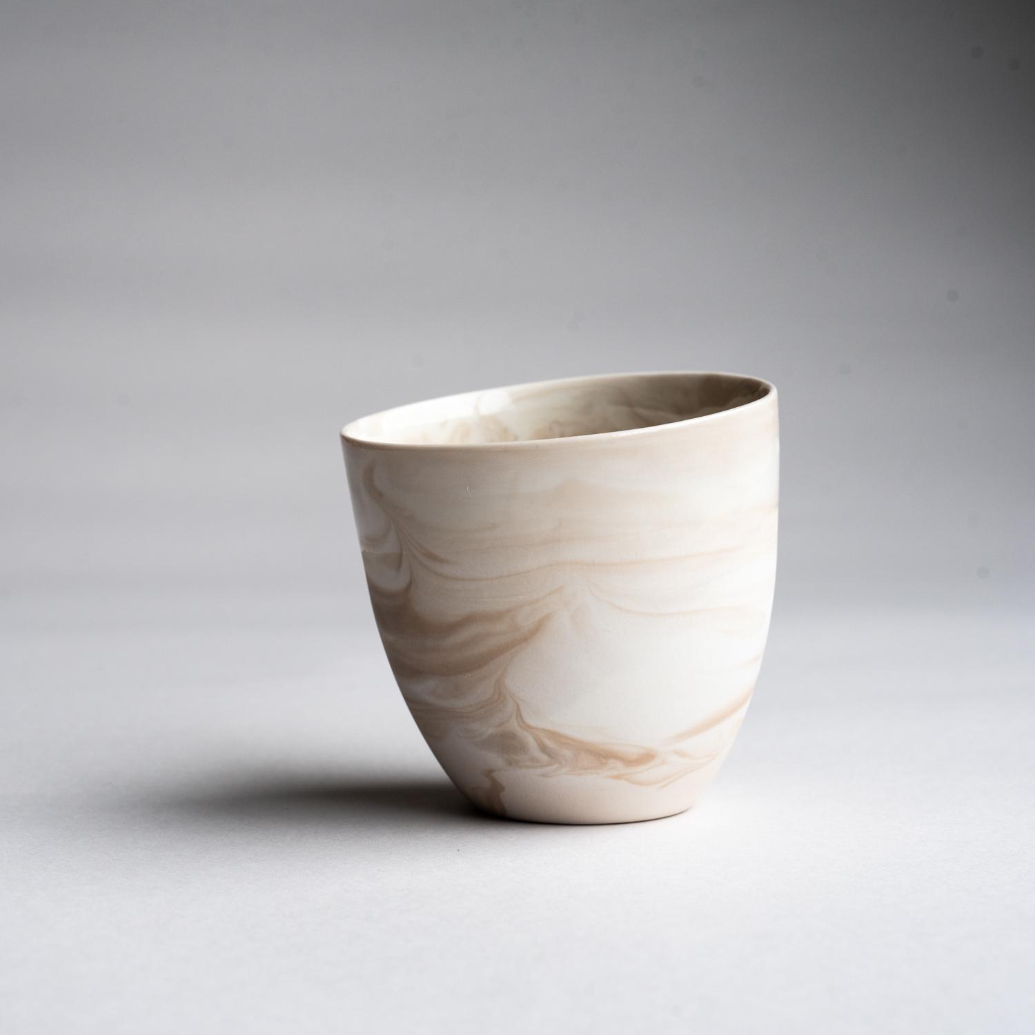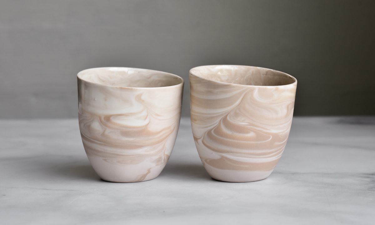 Vi har valgt vår bestselger KRUM kaffekopp, og laget en marmorert utgave i fargen LATTE.