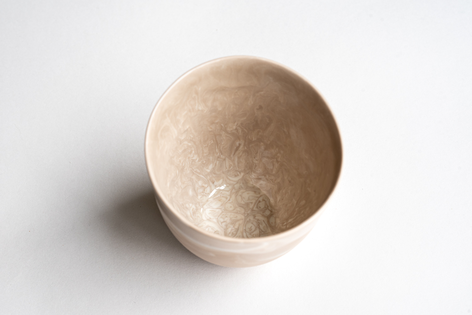 Den marmorerte koppen har store variasjoner i mønster og farge. Både utenpå og inni.