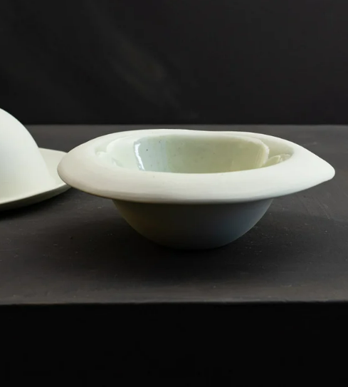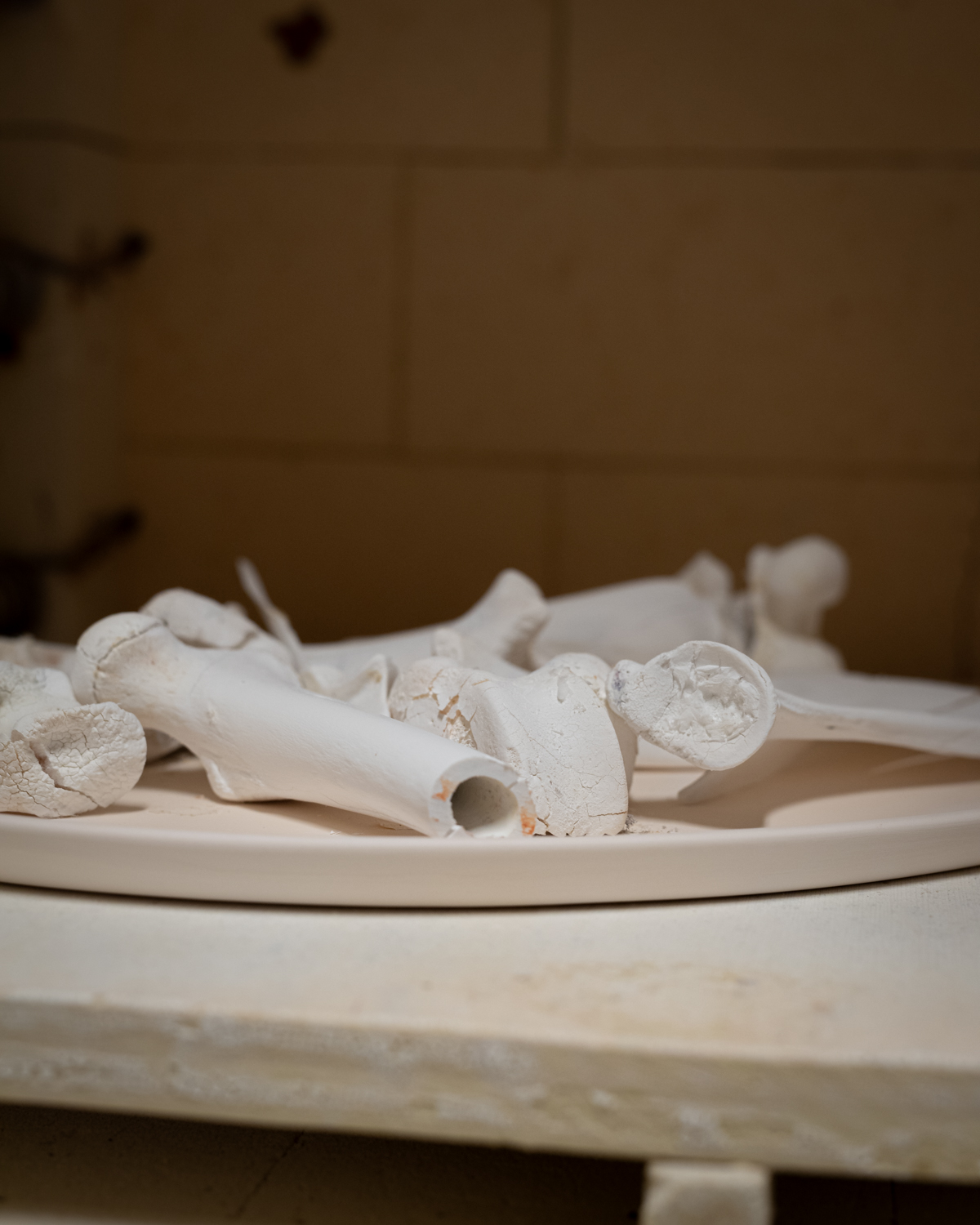 Dyrebeina har vi brent og knust til pulver og blandet i porselensmassen og glasur sammen med de andre råstoffene.